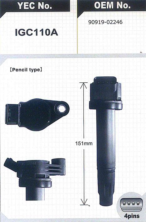 Катушка зажигания / YEC для Toyota Harrier 2003-2008 Kluger; H=151mm; IGC110A; (TG-90919-02246 90919-02246 ST-) SPL1105